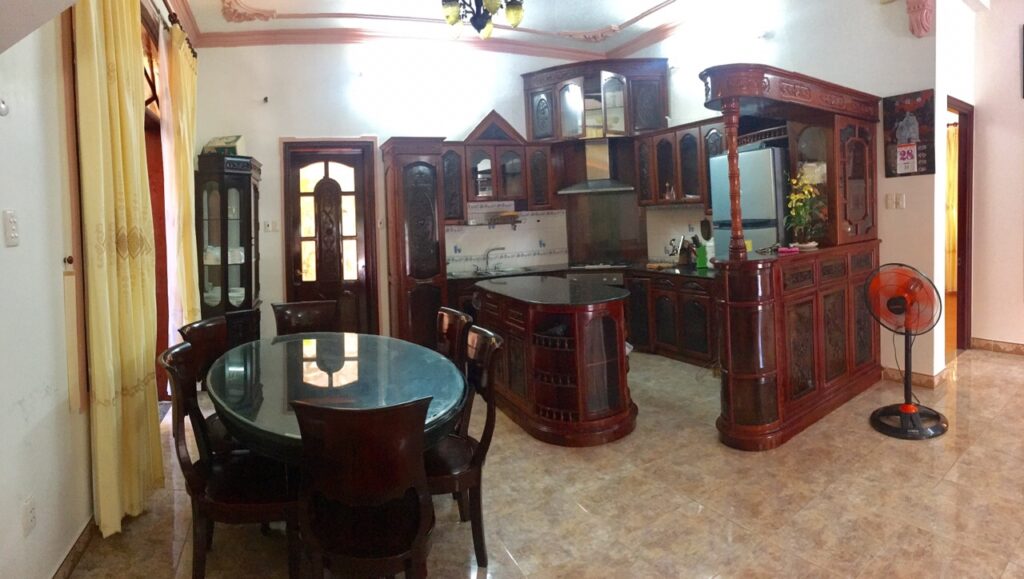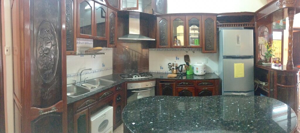 – Phòng bếp rộng rãi, đầy đủ đồ dùng nấu bếp: lò vi sóng, lò nướng, nồi cơm điện, bình đun siêu tốc, tủ lạnh, chén bát…