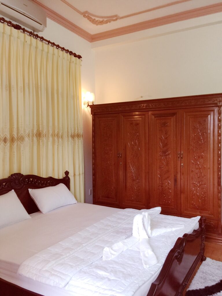 – Thiết kế: Diện tích sử dụng trên 300m2 với 01 phòng khách, 05 phòng ngủ – 6 giường đôi và nệm dự phòng, đồ nội thất cao cấp, sang trọng tiêu chuẩn khách sạn; 04 phòng tắm đầy đủ khăn và đồ dùng cá nhân, với bồn tắm và tắm đứng.