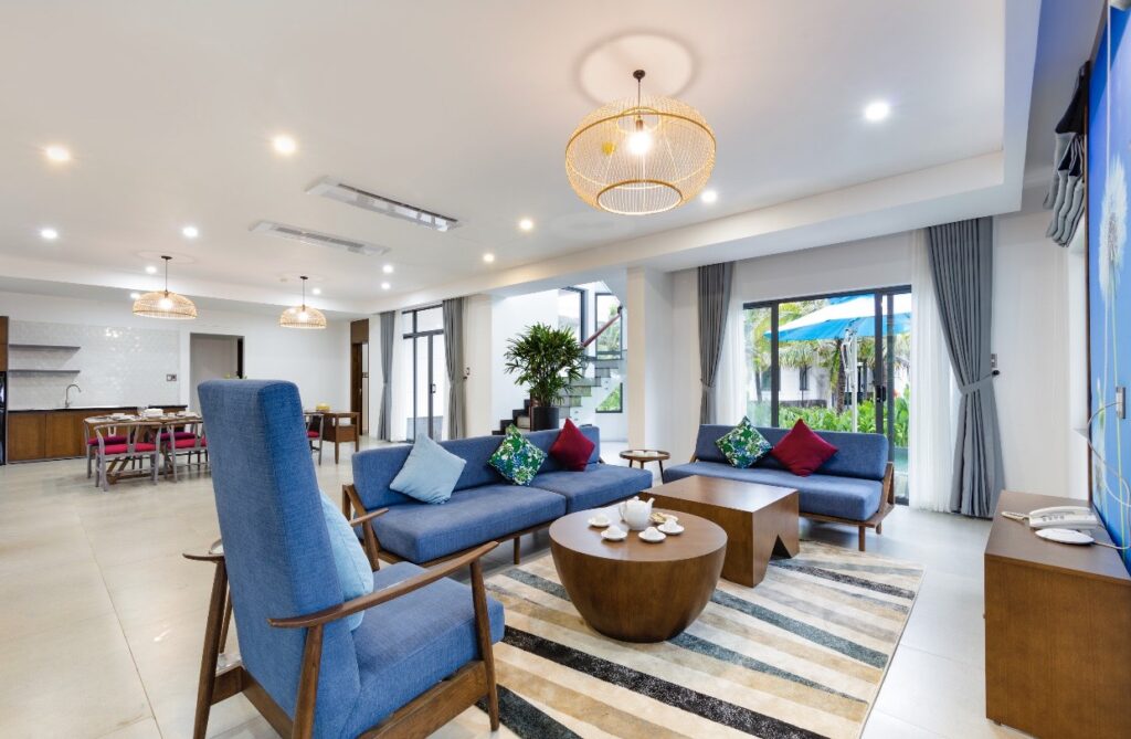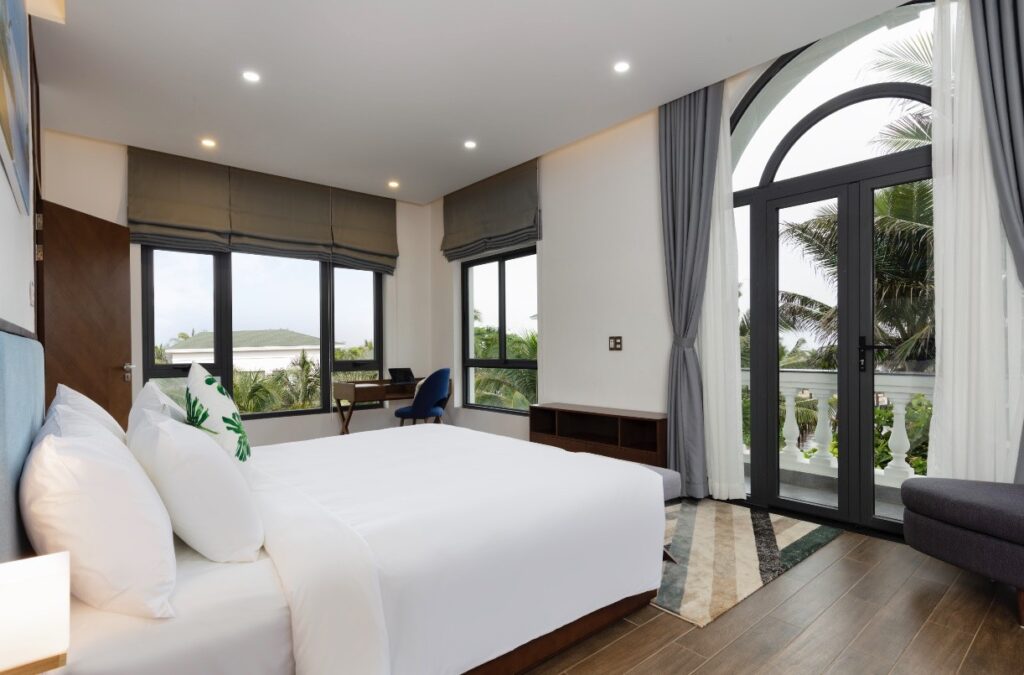 – Villa 4 phòng ngủ view biển: Biệt thự 4 phòng ngủ với kiến trúc tinh tế, thoáng mát, rộng rãi. Khu vực các phòng ngủ và toilet riêng biệt với phòng bếp, khu vực sinh hoạt chung tuyệt đẹp. Sức chứa cơ bản 8 người, đặc biệt phù hợp cho các hoạt động của gia đình.