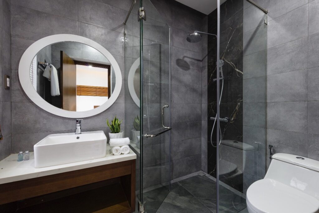 – Với thiết kế bằng cửa kính mở trượt xung quanh nhà tạo ra một không gian mở, thoáng mát và tối đa hóa tầm nhìn hướng biển. Mỗi biệt thự đều có hồ bơi riêng ngay sát bên phòng khách và bãi cát trắng mềm mại của bãi biển Hồ Tràm.