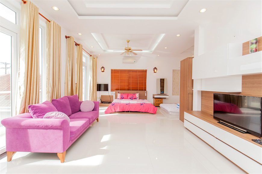 – Phòng sinh hoạt chung có bàn chơi bi-a, bàn ghế uống café, tivi đầy đủ