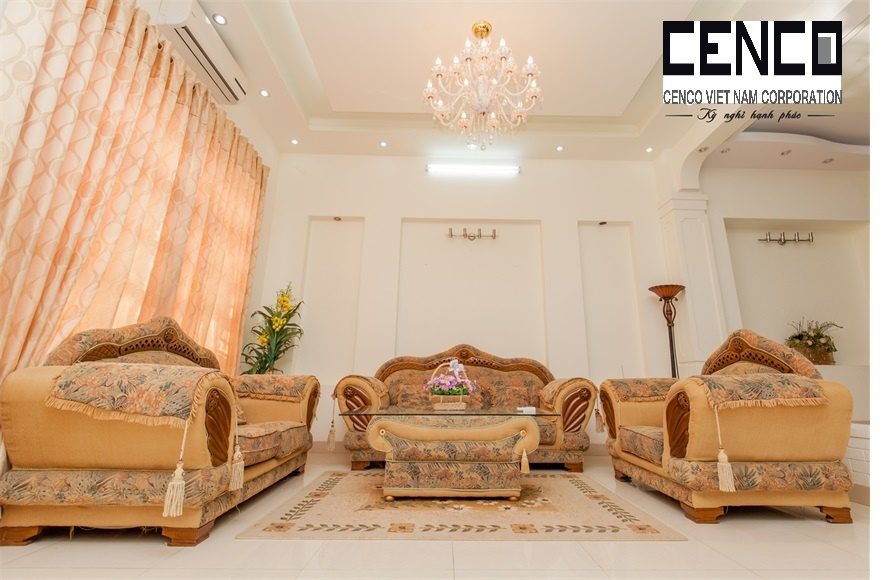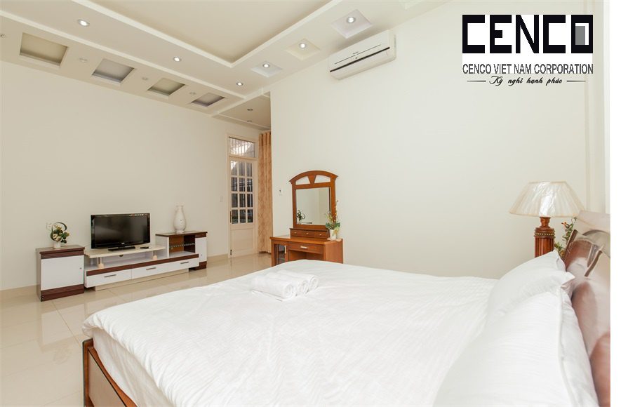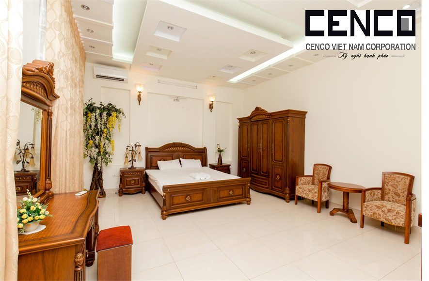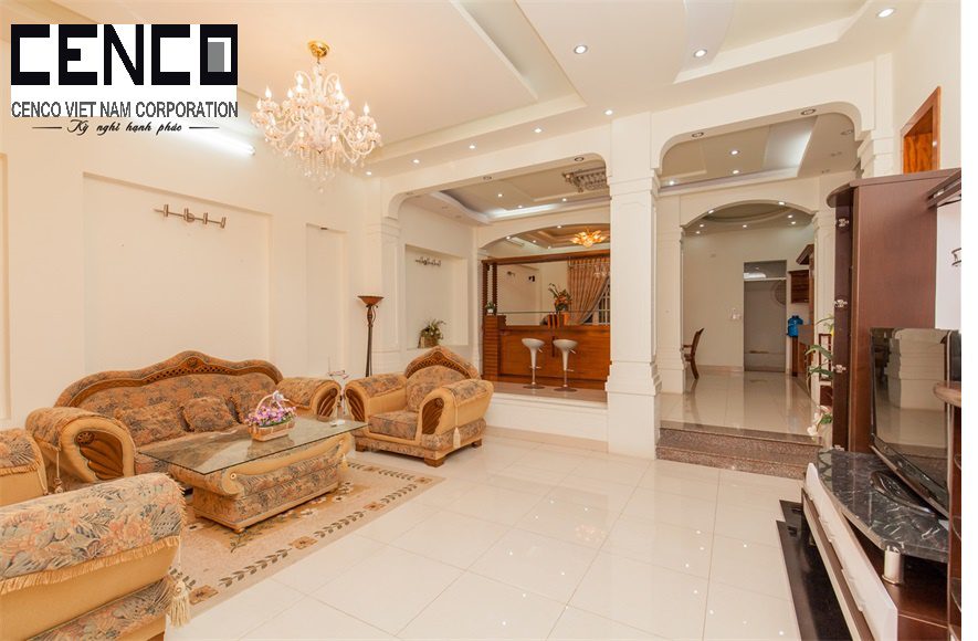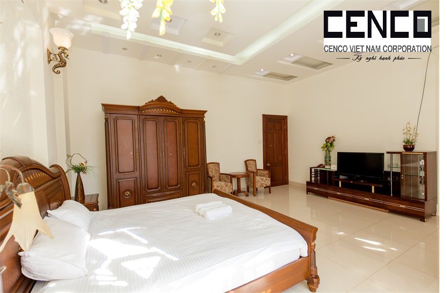 – Thiết kế: Diện tích sử dụng trên 500m2 với 05 phòng ngủ có 4 phòng ngủ 4 giường đôi và nệm dự phòng và 1 phòng tập thể, đồ nội thất cao cấp, sang trọng tiêu chuẩn khách sạn; phòng khách sang trọng và phòng bếp đầy đủ trang thiết bị. Các phòng đều có toilet riêng biệt mang lại sự tiện nghi. 5 Phòng tắm đầy đủ khăn và đồ dùng cá nhân, với bồn tắm và tắm đứng.