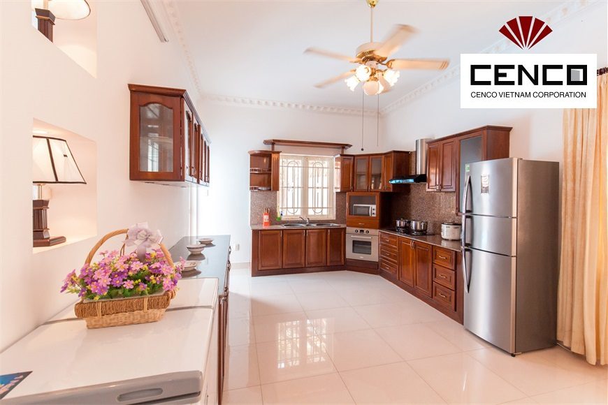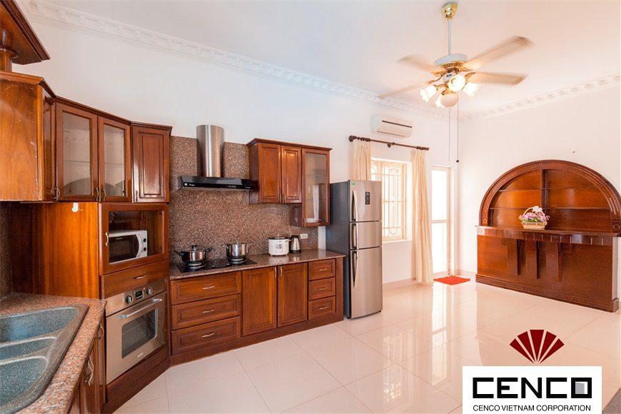 – Phòng bếp rộng rãi, đầy đủ đồ dùng nấu bếp: lò vi sóng, lò nướng, nồi cơm điện, bình đun siêu tốc, tủ lạnh, chén bát…