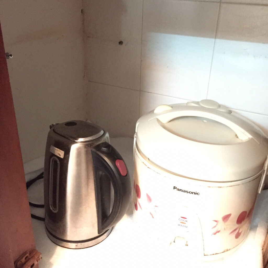 – Phòng bếp rộng rãi, đầy đủ đồ dùng nấu bếp: lò vi sóng, lò nướng, nồi cơm điện, bình đun siêu tốc, tủ lạnh, chén bát…